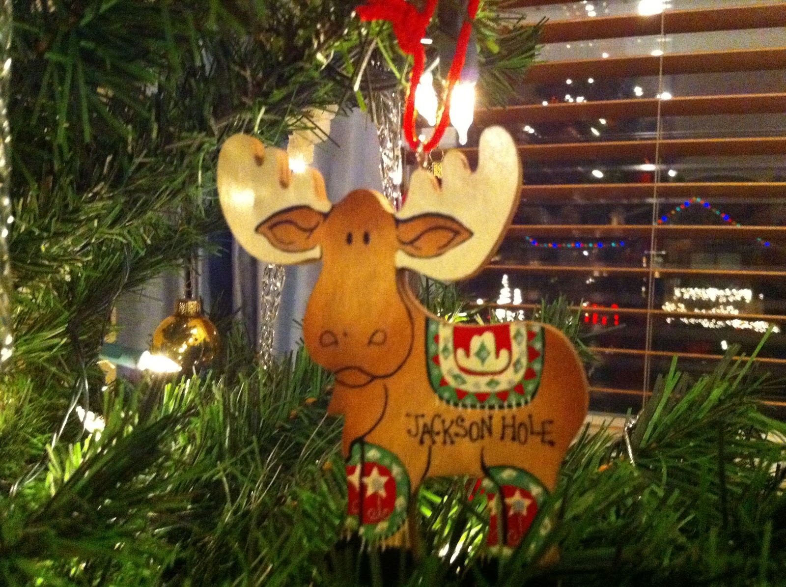 Finally with tree in place, miraculously meeting all my criteria, Chad went back to the basement to find the box of tree trimming supplies.